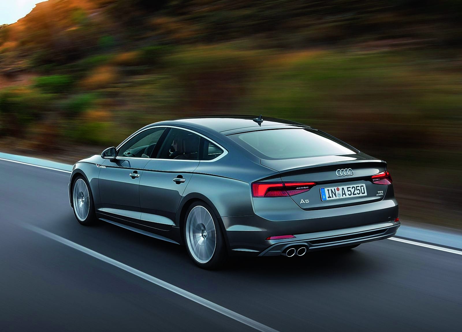 După cum era de așteptat, versiunea cu cinci uși preia de la A5 Coupé atât aspectul general, cât și gama de propulsoare, compusă din două versiuni TSI și trei TDI. Concomitent, a fost anunțat și S5 Sportback, care dispune de 354 CP și ajunge la 100 km/h în doar 4.7 secunde, fiind dotat cu tracțiune integrală quattro. La interior, regăsim același tablou de bord digital Virtual Cockpit, care este secondat de display-ul cu diagonala de 8,3 inchi al centralei multimedia MMI, poziționat deasupra consolei centrale. Din ofertă nu lipsesc nici farurile adaptive Matrix-LED.