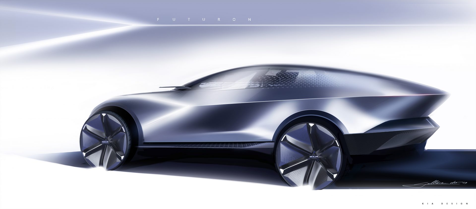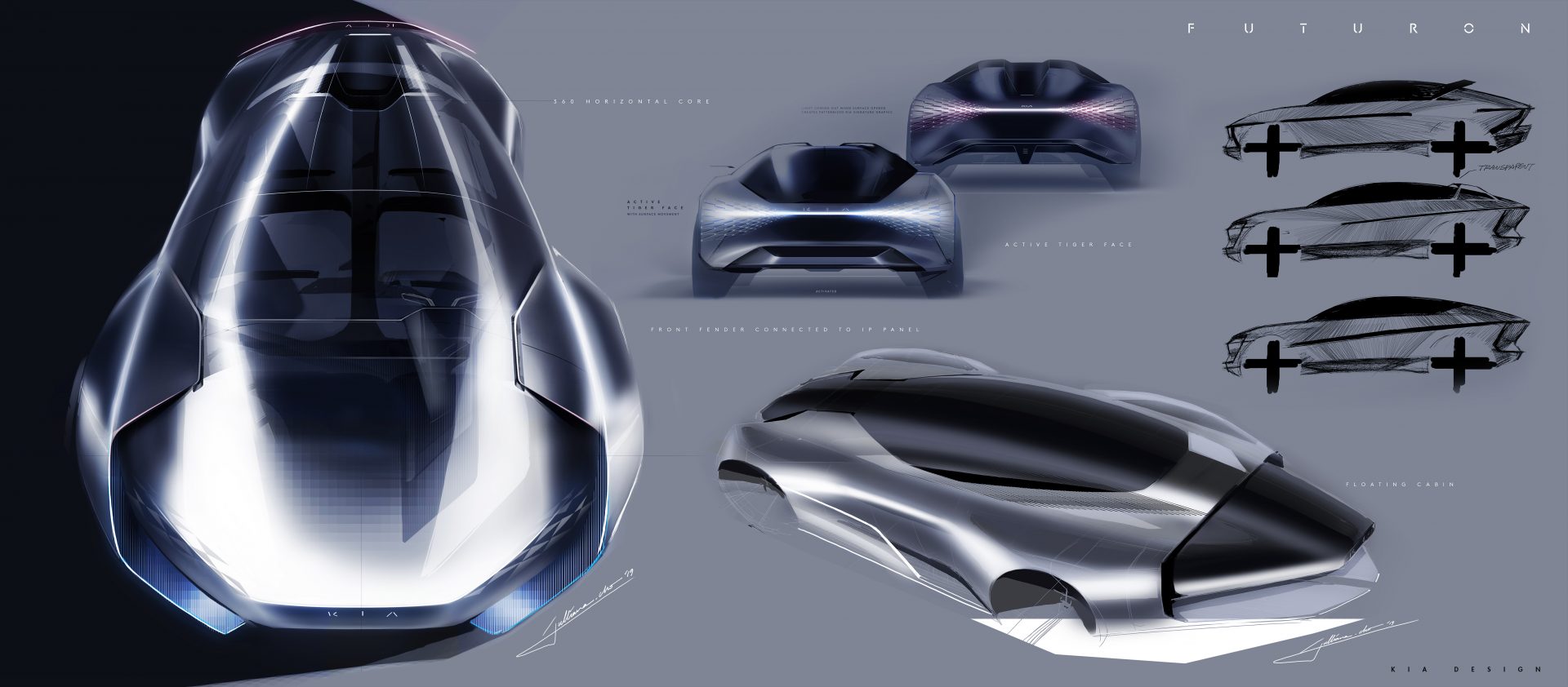 Numele este simplu de explicat și este cât se poate de concis, fiind un portmantou al cuvintelor britanice „future” și „on”. Evident, respectând tendințele actuale, Futuron nu este orice fel de crossover, ci un coupe-SUV cu grila „tiger nose” iluminată (da, la tine ne uităm, BMW X6). Drept consecință directă, Kia prezintă noul său concept drept un model sportiv care, cu totul întâmplător, utilizează o platformă de SUV. Și este, pe deasupra, complet electric. Deci, ne sare imediat gândul la viitorul SUV Ford cu ADN de Mustang… Futuron are un nume haios, însă deciziile asumate de Kia sunt cât se poate de serioase – cel mai probabil nu îl vom vedea niciodată în producția de serie.