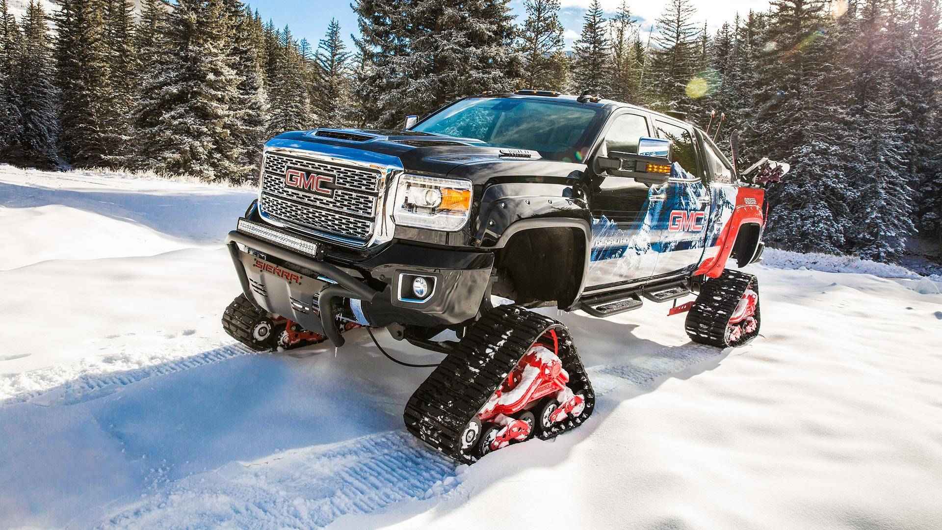 Să vă explicăm – munții din SUA sunt cunoscuți pentru facilitățile excelente de petrecere a timpului liber pentru pasionații de sporturi de sezon (rece) și nu numai, dar și pentru locațiile naturale absolut superbe, însă pustiitor de neîndurătoare. Dar pentru aventurierii cărora le place să străbată și să deschidă noi cărări – ideal la bordul unui model tot-teren, GMC le oferă soluția perfectă (din păcate doar cu titlu demonstrativ). Este vorba despre conceptul Sierra 2500HD All Mountain, folosit în scopuri promoționale în zona Vail Mountain pe parcursul acestei ierni. Americanii au luat pur și simplu un pickup Sierra 2500HD Denali 4WD Crew Cab (una din versiunile comerciale ale truck-ului full size) și i-au atașat o pereche de șenile Mattracks 150 Series. Nici o grijă deci pentru cei care vor să ajungă oriunde – mai ales datorită utilizării unui diesel V8 de 6,6 litri capabil de nu mai puțin de 445 CP și 1234 Nm. În plus, cu o așa caroserie chiar dacă cineva ar rămâne prin absurd blocat pe munte, acest concept tot ar fi ușor de reperat de echipele de salvare…