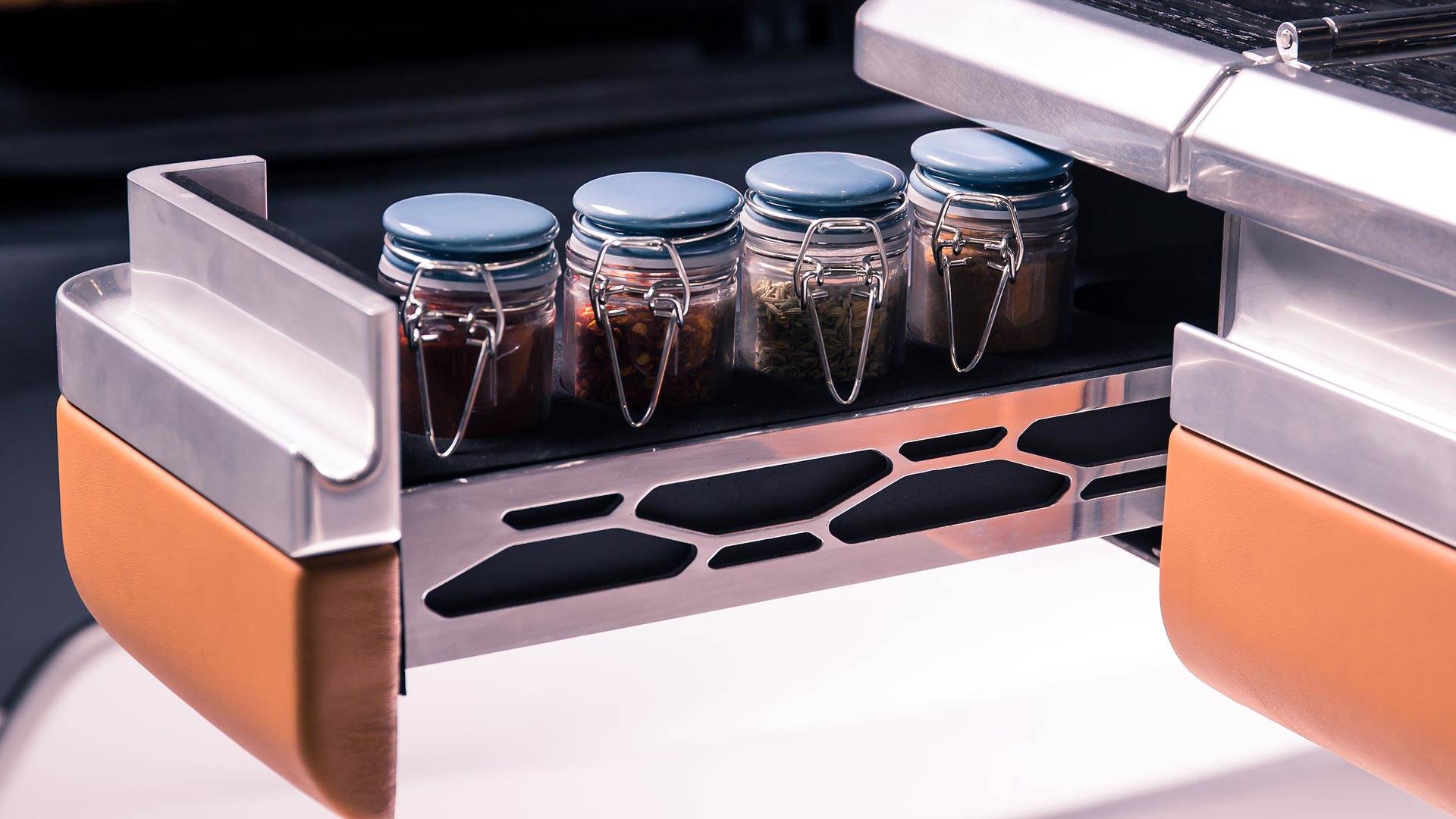 La fel ca alte modele premium din categoria sa, Discovery vine standard cu torpedo-ul și cotiera centrală refrigerante, însă Jamie a cerut și a primit inclusiv un prăjitor de pâine, o adevărată bucătărie de campanie, pliabilă și care poate fi ascunsă în portbagaj, un rotisor integrat în grila radiatorului și chiar și o cafetieră… În apărarea lui Jamie, vă putem spune că designerii și inginerii SVO i-au spus, ca oricărui alt client al lor, că orice este posibil… Sigur, un automobil de familie precum Discovery ar căpăta un statut special în „clan” – chiar dacă nouă ni se pare că vesela cam este în pericol, la fel ca și mâna șoferului dacă confundă cumva schimbătorul de viteze cu toaster-ul…