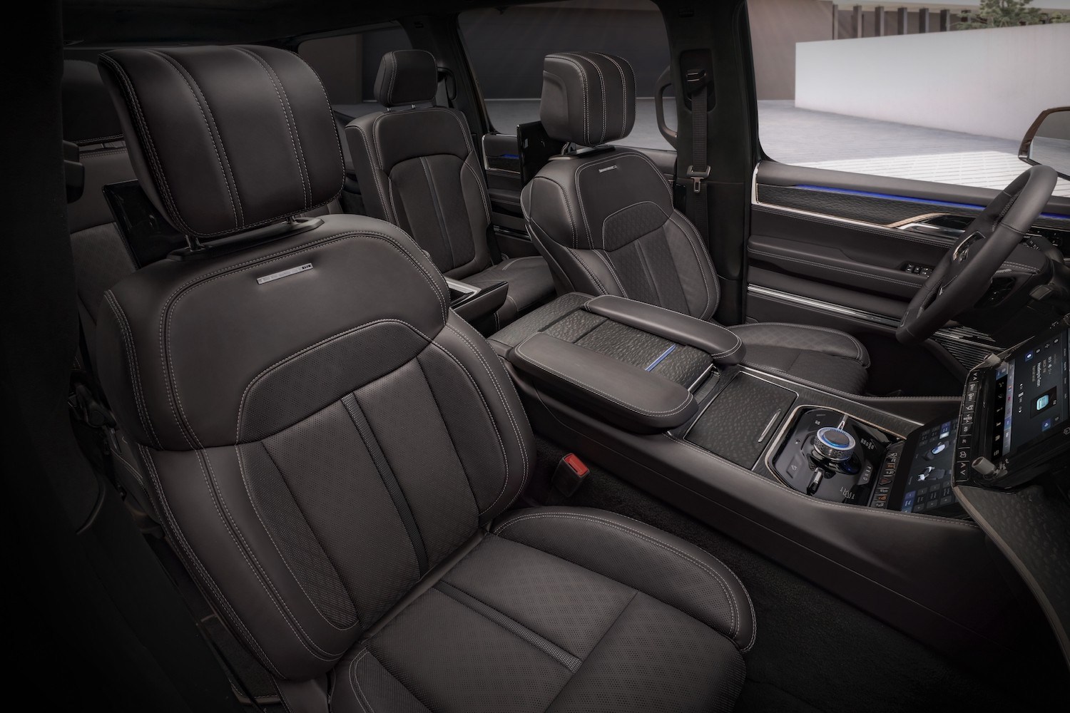 Pleiada de touchscren-uri nu se termină aici. Pe consola centrală din spate există un alt display, de 10,1 inch și fiecare pasager de pe rândul doi de scaune are propriul touchscreen de 10,1 inch integrat în spătarul scaunelor din față. Responsabil pentru entertainment este sistemul Uconnect 5, de 5 ori mai rapid decât varianta anterioară a acestuia.