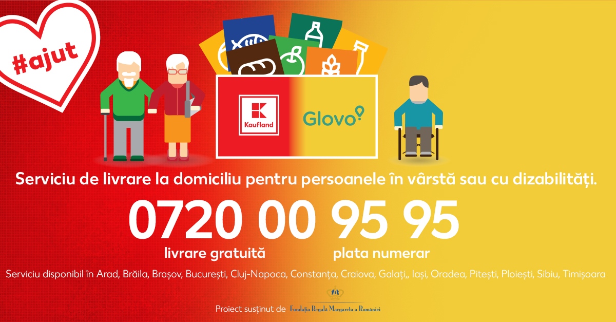 Pentru a veni în sprijinul persoanelor în vârstă sau cu dizabilități, care nu pot ieși din casă în perioada aceasta, Kaufland România lansează alături de Glovo și de Fundația Regală Margareta a României o linie telefonică specială de preluare a comenzilor. Compania va asigura livrarea gratuită, cu plata la domiciliu, a produselor.