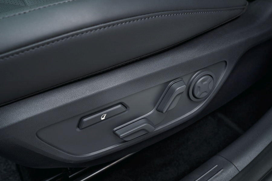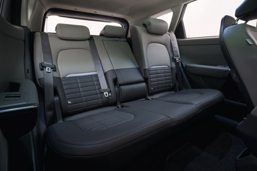 Acesta dispune de podea reglabilă pe două niveluri, iar cu podeaua poziționată în poziția superioară se obține suprafață plană prin rabatarea banchetei fracționabile. În premieră pentru un model hibrid, Seltos oferă opțiune de încărcare V2L, facilitate disponibilă în mod normal la modelele electrice, care permite încărcarea diverselor dispozitive externe. Noi am luat loc pe bancheta spate și spațiul interior este generos pentru acest segment, șezutul fiind suficient de lung, iar spătarul care se poate regla sub mai multe unghiuri pe o plajă de 24 grade, este bine profilat.
