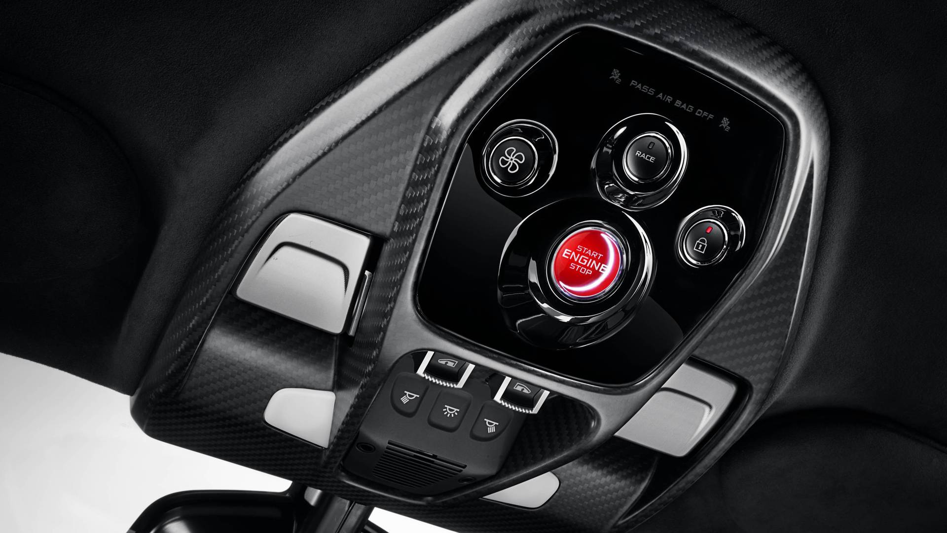 Chiar și portierele cu deschidere în unghi diedru, inspirate de McLaren F1, au fost gândite (se deschid inclusiv cu o porțiune din acoperiș) pentru a facilita accesul șoferului și pasagerului, chiar și îmbrăcați complet în combinezon și cu casca pusă. În plus, portierele au și o zonă laterală care poate fi echipată opțional cu sticlă în locul panoului standard din fibră de carbon – în timp ce cockpit-ul reflectă din plin ideea de funcționalitate extremă a exteriorului. Astfel, în afară de Alcantara sau pielea de pe scaunele scoică din fibră de carbon (realizate conform specificațiilor complete ale viitorului proprietar), nici un al element interior nu este îmbrăcat în vreun material – chiar și elementele constructive ale portierelor au rămas expuse pentru a salva și acolo câteva grame prețioase.