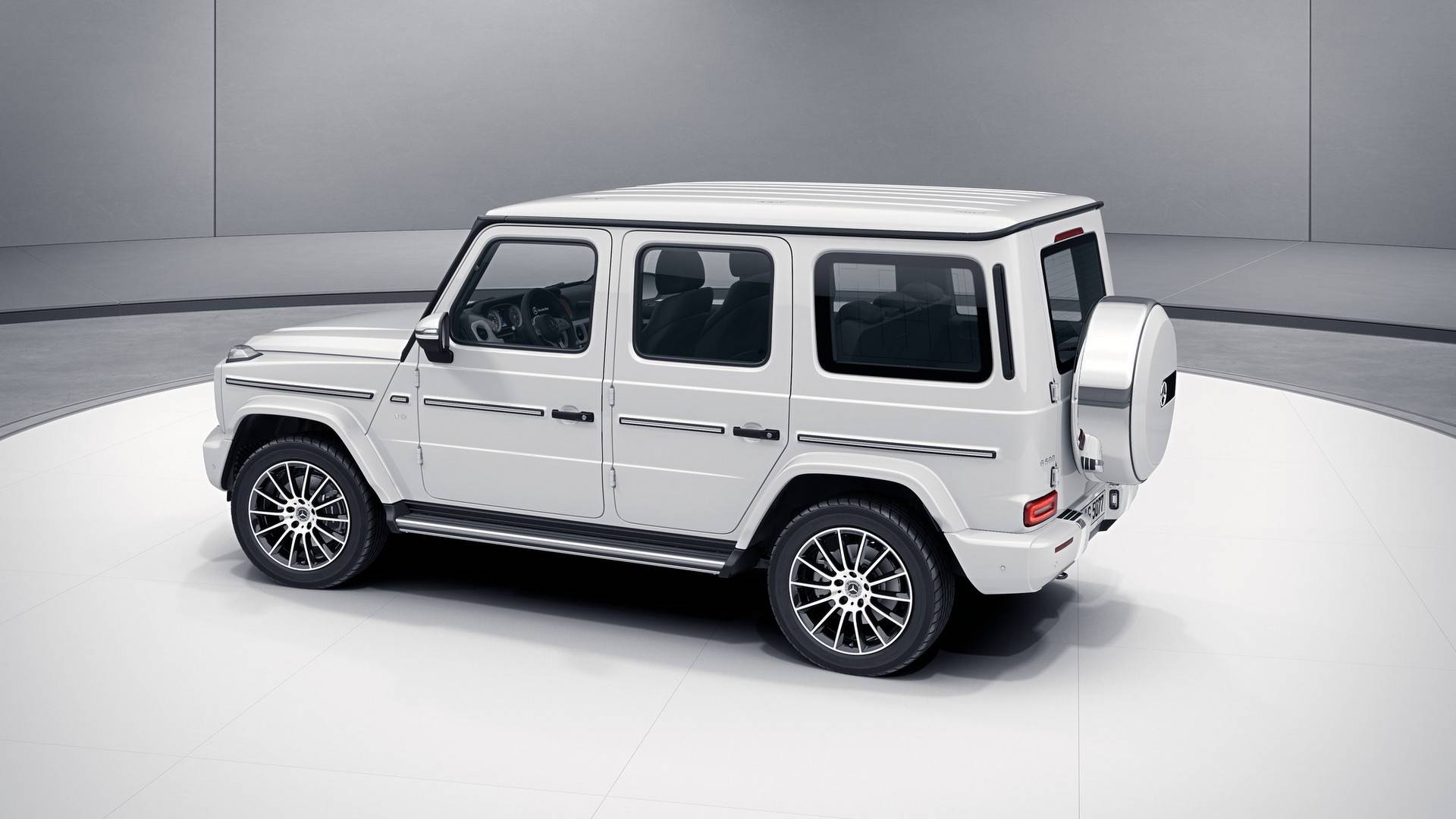Fără a dispune încă de performanțele tehnice ale unui model AMG veritabil, G Class AMG Line are totuși numeroase elemente distincte. Avem astfel două opțiuni speciale din Affalterbach pentru jantele de 20 inch, precum și modificări aduse părților frontale și dorsale, precum și pasajelor roților. În plus, AMG Line aduce cu sine și un nou sistem de evacuare sport pentru un sound mai pronunțat al V8-ului de 4 litri și 422 CP cu 610 Nm.