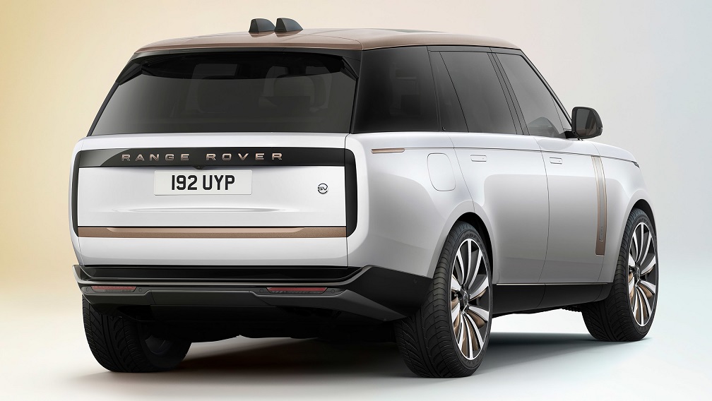 Mulțumită acestor detalii de stil, noul Range Rover este recunoscut la prima vedere, deși numeroasele caracteristici noi sunt vizibile la a doua vedere. Cel mai nou detaliu din punct de vedere stilistic se găsește la partea din spate. Blocurile optice din spate sunt acum integrate ca element de design integrat în hayon care conform tradiției este format din două părți. Noile blocuri optice înalte și înguste pot fi văzute doar atunci când sunt acționate. O altă caracteristică specială este designul constant „curat” al caroseriei, fără componente extinse, cum ar fi mânerele portierelor sau elemente de design atașate. Doar oglinzile exterioare și aripioarele de pe plafon ale sistemului de infotainment ies din linia generală.