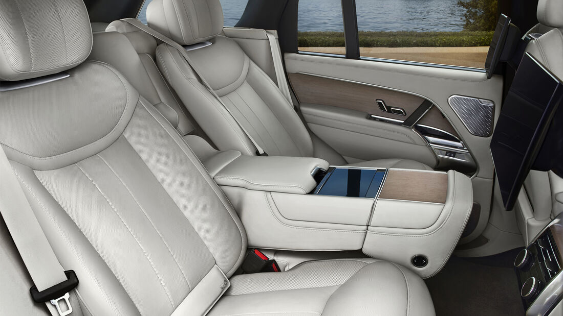 Partea inferioară a hayon-ului din două părți vă invită să vă relaxați pentru un timp, mai ales când o parte din podeaua variabilă de încărcare este configurată ca spătar. Clapeta mobilă este garantată pentru o greutate de maxim 300 kg. Nivelul de confort de top așteaptă în interiorul Range Rover-ului cu ampatament lung LWB mai ales dacă se găsește în versiunea Executive Class configurată cu cele trei rânduri de scaune. Două scaune individuale mari din rândul doi pot fi reglate electric într-o varietate de moduri și permit orice poziție imaginabilă de la un tron ​​vertical la o poziție înclinată pentru o relaxare îndelungată. Aerul condiționat și sistemul de infotainment pot fi operate convenabil printr-un mic ecran tactil din consola centrală.