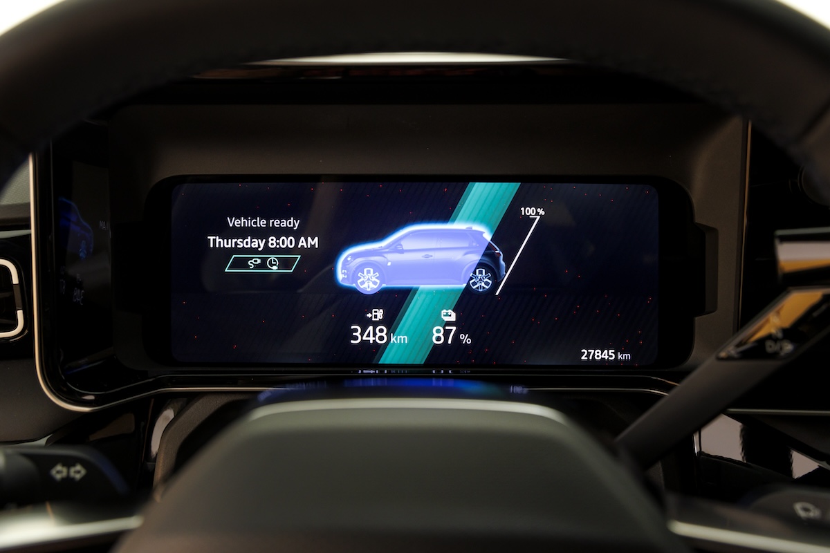 Portul de încărcare AC (11 kW) este bidirecțional pe motorizările de 150 și 120 CP, adică integrează V2L și V2G, asta însemnând că bateria poate alimenta diverse accesorii externe, dar poate livra energie și unei rețele, cum ar fi propria casă. La debutul vânzărilor va fi disponibil doar motorul cu puterea mai mare (150 CP) care poate asigura accelerația 0 – 100 km/h în sub 8 secunde, iar viteza maximă este limitată la 150 km/h.