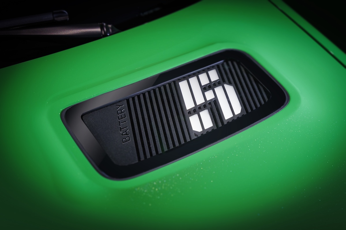 Dacă vă uitați la modelul din 1972 veți vedea că, pe capotă este o priză de aer, în partea stângă. Așa a fost și la cenceptul inițial (o inserție, pentru că nu mai era nevoie de aer). La modelul de serie, inginerii/designerii s-au gândit că trebuie să fie ceva acolo. Dar trebuie să aibă și o funcție. Așa că aici există acum o inserție neagră care găzduiește un (destul de) mare… 5. O cifră luminată, formată din bare luminoase longitudinale, șase. Ideea este că atunci când te apropii cu cartela de acces de mașină, vei vedea toate sau o parte dintre aceste bare, luminate. Ele arată nivelul de încărcare al bateriei. Ceva gen… (simply) clever.