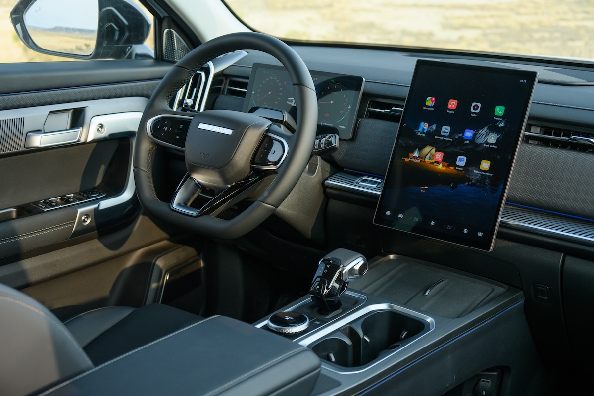 • Omoda 9 SHS. Este cel mai pretențios model al gamei, tot un SUV compact, prezent și la evenimentul de lansare din România. Nu am avut timp să-l studiem foarte bine, dar atmosfera premium, mai ales la interior, este evidentă. Acesta are tot un sistem plug-in hybrid, dar mult mai evoluat. Același motor termic de 143 CP este combinat cu trei motoare electrice: două în față (102 și 122 CP) și unul de 238 CP în spate. Totalul sistemului este de 455 CP și 650 Nm, accelerația 0 – 100 km/h este posibilă în 4,9 secunde. Bateria de 34,46 kWh (net) promite autonomie electrică oficială de 145 km. Prețul începe de la 49.990 euro.
