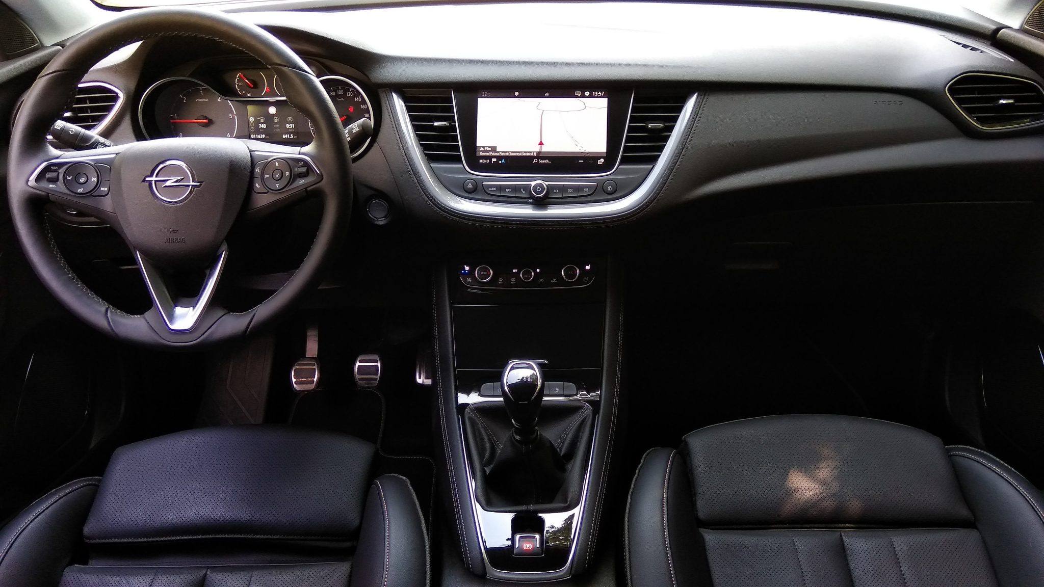 La interior, impresia generală se inversează – Grandland X pare de această dată mai apropiat de Astra în ceea ce privește atmosfera generală, configurația sistemelor de bord – mai ales instrumentarul dedicat șoferului – și calitatea materialelor. Foarte interesant, am întâlnit la capitolul HMI (human machine interface) un detaliu negativ. În ciuda faptului că Astra, cronologic, este modelul apărut mai timpuriu – anumite detalii te vor face să crezi că de fapt Grandland X este modelul mai „bătrân”: amplasarea comenzilor computerului de bord (pe volan la Astra, pe una din baghetele de comandă la Grandland X), zona sistemului de climatizare, mai bogată în opțiuni la Astra decât la Grandland X (este adevărat, cel din urmă, avea în versiunea testată scaune încălzite și ventilate, o opțiune care nu mai este de mult un moft) dar și setările sistemului de infotainment. Am lăudat acest din urmă element la Astra – Opel a progresat foarte mult la acest capitol – și ne menținem opinia în ceea ce-l privește pe Grandland X, însă trebuie să recunoaștem că pe modelul crossover pare să-și fi găsit locul o versiune „intermediară”: rezoluția ecranului tactil lasă de dorit (aspect ușor observabil în momentul utilizării camerelor video sau în meniul sistemului de navigație, dotat totuși cu hartă full 3D, care afișează inclusiv clădirile din jur) iar anumite comenzi directe nu sunt la fel de intuitive. Totuși, Opel oferă în continuare o opțiune excelentă – posibilitate conectării smartphone-ului propriu atât la Android Auto cât și la CarPlay. Din punctul de vedere al șoferului, viața la bordul lui Grandland X este cât se poate de facilă – un utilizator frecvent al modelelor Opel se va aclimatiza rapid și intuitiv la modul de operare al sistemelor crossover-ului, în timp ce un client care ia contact pentru prima oară cu el va avea o curbă rapidă de învățare, deoarece constructorul german a renunțat la vechile sale „metehne”, ce includeau o aglomerare inutilă de comenzi la bord.