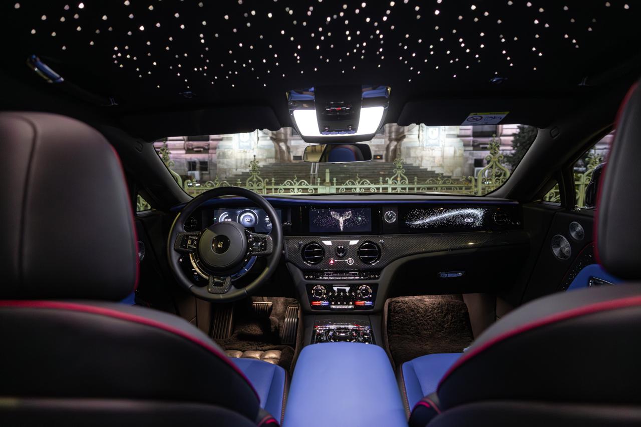 Modelul de pe planșa de bord iluminată, o interpretare abstractă a Spirit of Ecstasy, include acum simbolul Infinity utilizat în întreaga familie Black Badge. Un simbol al puterii infinite, emblema a fost cândva folosită pentru a marca recorduri istorice de viteză pe apă și este un semn de încredere pentru pionierii adrenalinei. Fascia include peste 5.500 de „stele” de diferite dimensiuni și intensități, așezate pe un „cer” negru lucios de tip Piano Black.