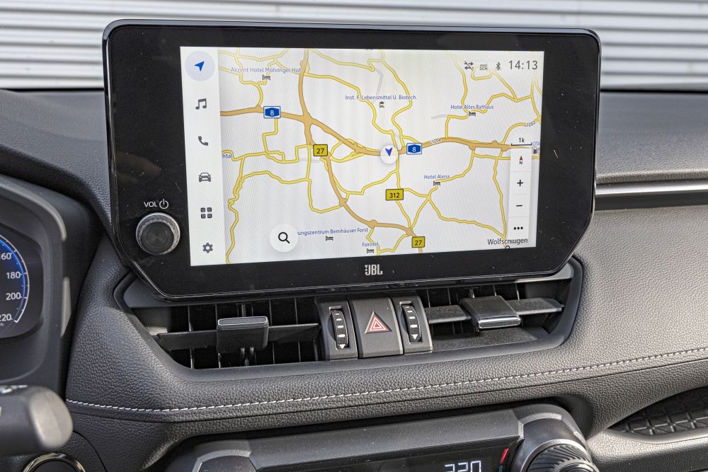 La Toyota RAV4, capota trebuie în continuare ridicată manual și susținută cu o bară metalică, iar în habitaclu există acum mai puține butoane în jurul ecranului tactil, care a evoluat considerabil, având o rezoluție mai bună și reacții mai rapide. Însă operarea este mai greoaie, deoarece acum există doar un buton rotativ pentru volum, restul fiind controlat prin intermediul unui meniu fix, cu o serie de comenzi directe. Dacă vrei să găsești direct canalul radio preferat, mai bine lași asta în seama asistentului vocal, pentru că lista posturilor nu e ordonată alfabetic.