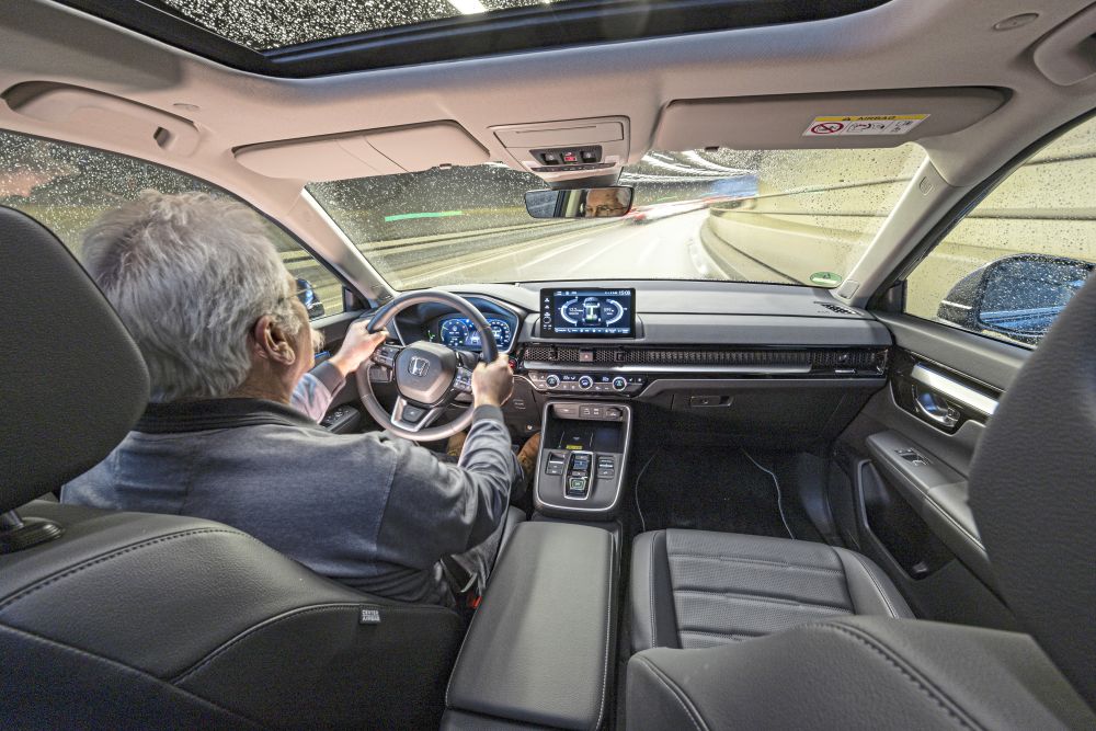 În cazul în care roțile din față nu au aderență, un arbore cardanic transferă puterea către puntea din spate, în funcție de necesități. Acest lucru funcționează bine, dar se traduce într-un consum mai mare de combustibil în comparație cu Toyota, inclusiv din cauza frecării crescute. Motorul cu combustie este mai des activ la Honda, care are o lungime de 4,71 metri și o masă de 1812 kg. Rezultatul în test, 8,0 litri de benzină pentru 100 km.