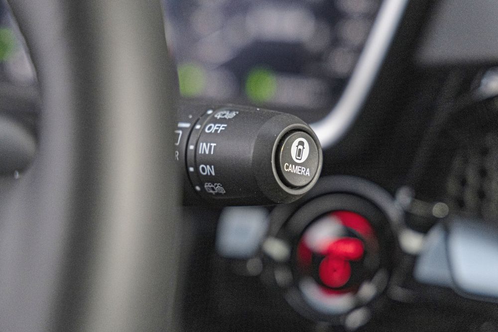 Asistentul pentru unghiul mort e completat de o cameră pe oglinda exterioară din dreapta, care proiectează automat imaginea pe ecranul central imediat ce acționezi semnalizatorul.