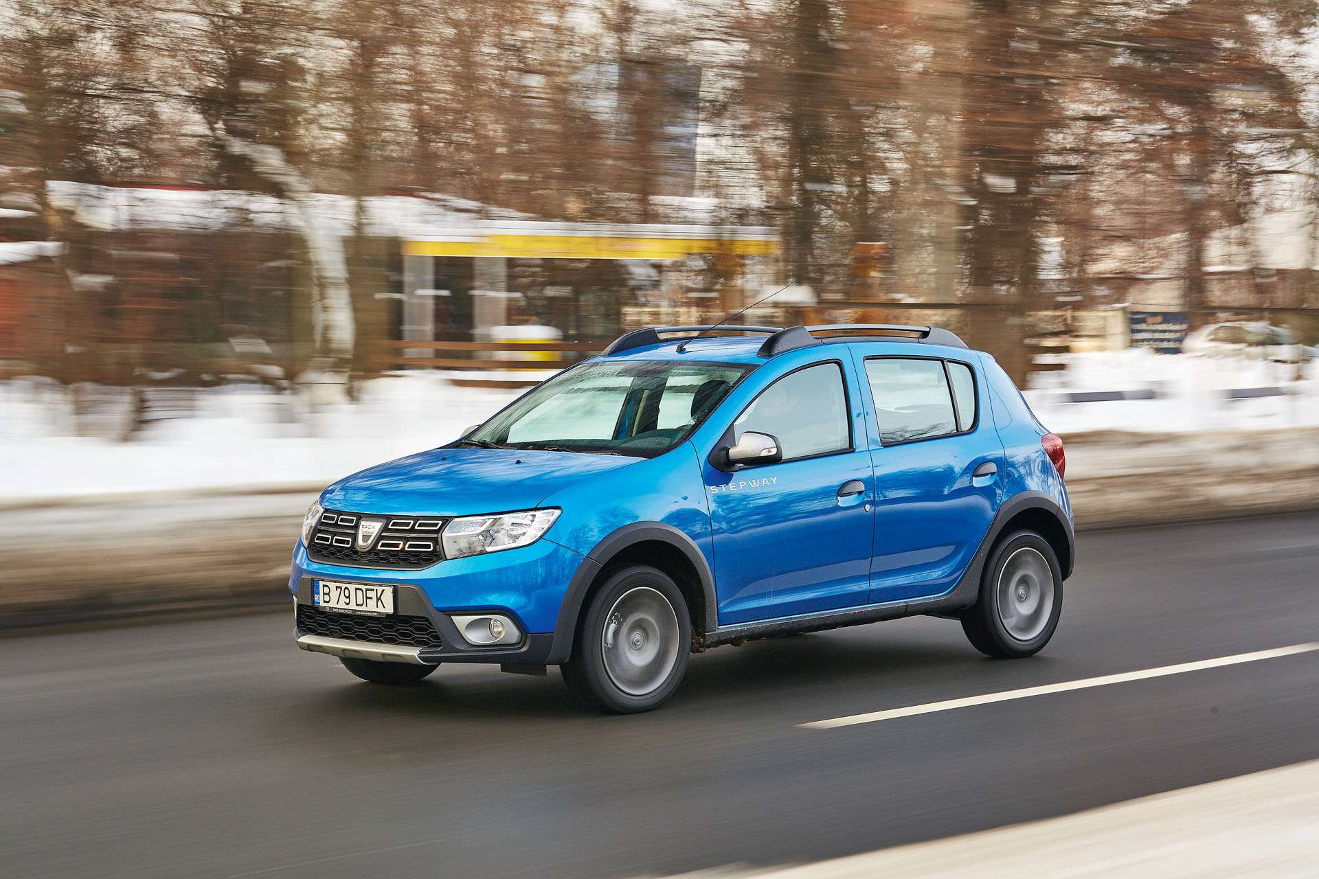 Este greu să îți imaginezi condiții mai vitrege pentru un test auto. În oraș, traficul e înțepenit între troiene, unele drumuri naționale sunt în continuare închise, iar prognozele anunță un nou val de ninsori. Totuși, pentru Sandero Stepway acest scenariu este cât se poate de nimerit pentru a-și expune calitățile latente, asigurate de dimensiunile compacte și garda la sol generoasă (173 mm), care îl ajută să se fofileze prin aglomerație, utilizând orice fărâmă de spațiu în vreme ce taie fără rețineri făgașele de zăpadă lăsate în urmă de celelalte mașini.
