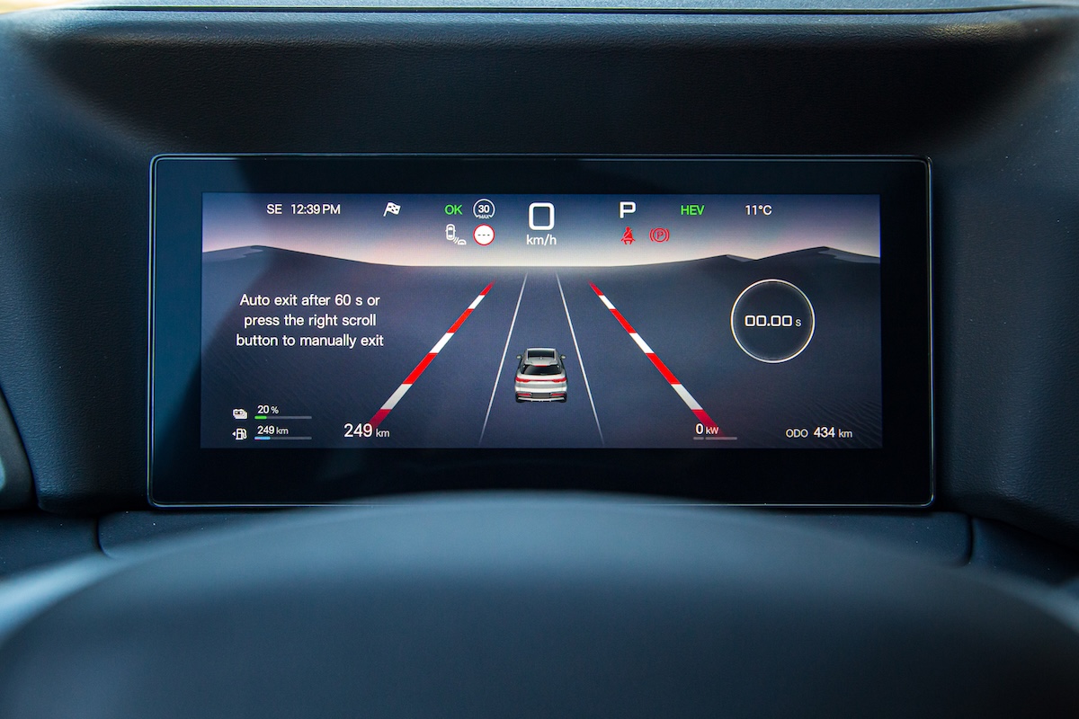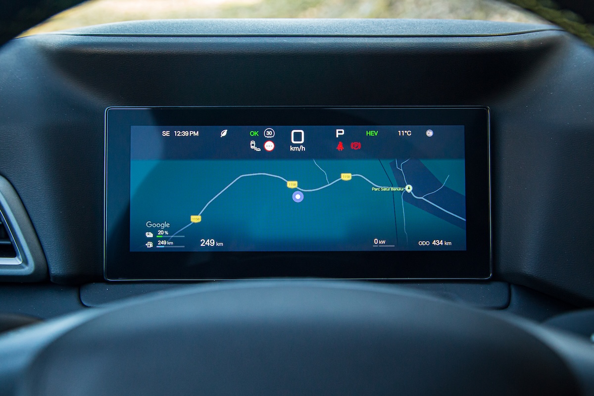 Tabloul de bord este un display de 8,8 inchi, care afișează multe informații. Dacă-ți place să vezi tot aici, e bine, dacă nu, trebuie să te obișnuiești. Mie îmi place, îmi dă senzația unui meniu de telemetrie. Am găsit și ceva care ar trebui rezolvat: tabloul de bord afișează procentajul bateriei, autonomia pe benzină și autonomia combinată. Ar fi fost de preferat să vezi și autonomia electrică, nu să stai să o calculezi prin scădere. Plafonul panoramic este foarte plăcut și standard pe versiunea de top pe care am condus-o. Spațiul este însă mult mai impresionant (același de la versiunile electrice). Pur și simplu ai foarte mult spațiu la genunchi, și asta nu doar raportat la lungimea mașinii! Iar volumul de 425 litri este chiar bun pentru clasa mașinii.