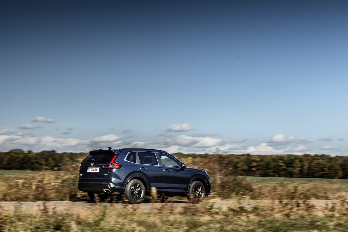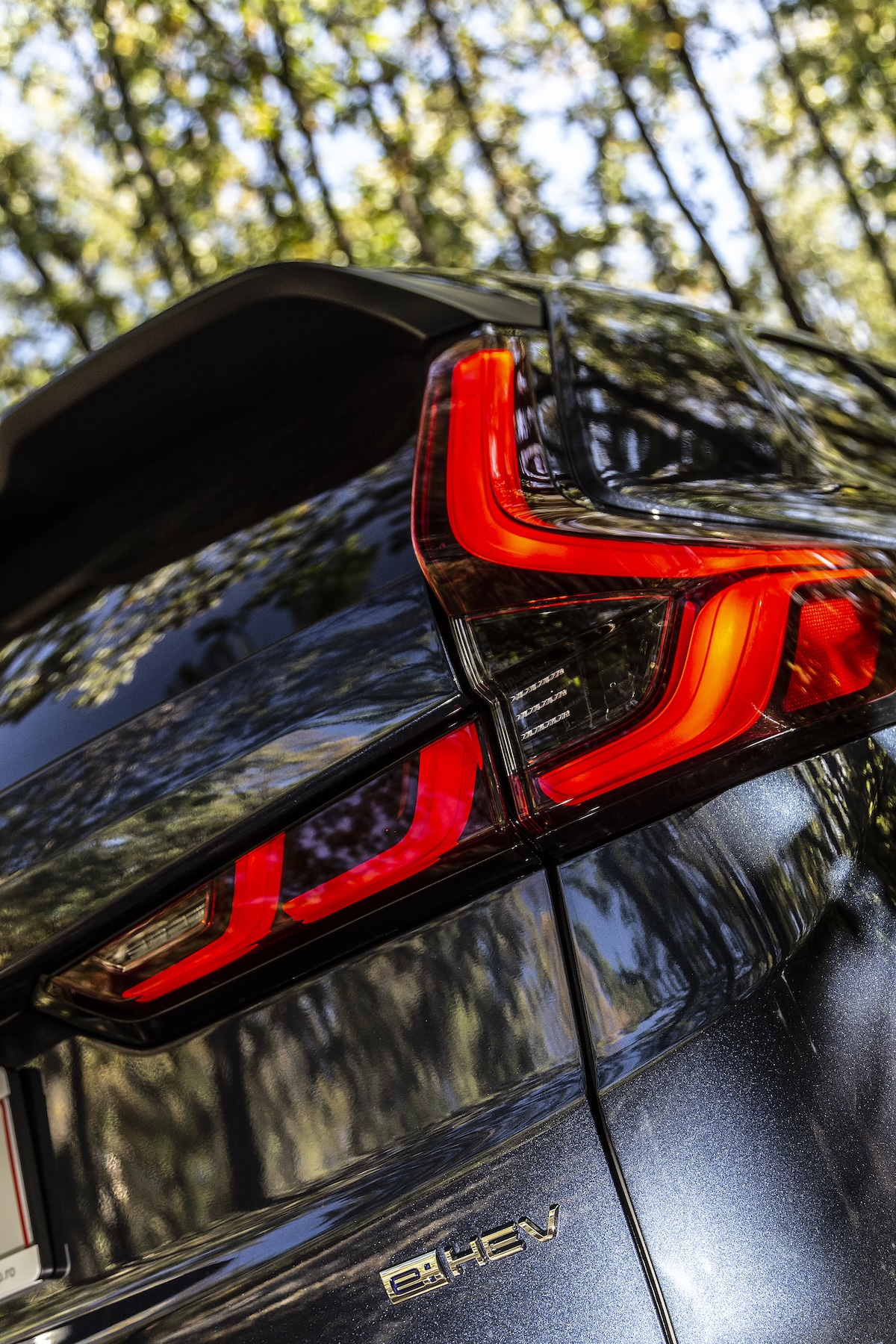 La prima vedere, ai același sistem de propulsie e:HEV de la Civic și ZR-V. Și ca la vechea generație CR-V. Doar că acesta este adaptat caracteristicilor de SUV ale noii generații CR-V. Astfel, motorul termic de 2 litri livrează 148 CP și 189 Nm, foarte puțin mai mult decât în cazul modelelor amintite mai sus. Puterea maximă e însă aceeași, 184 CP, dată de motorul electric care se ocupă de propulsie în cea mai mare parte, deși propulsorul termic are legătură mecanică cu roțile. Bateria are resurse surprinzător de mari pentru a propulsa mașina – am văzut modul EV activ chiar și la 100 km/h. Cam așa a fost conceput sistemul e-HEV: cât mai multă propulsie electrică, dar când este nevoie intervine prompt motorul termic. O spun fără rezerve, în acest moment e unul dintre cele mai bune sisteme hibride de pe piață,. Formidabil de eficient.