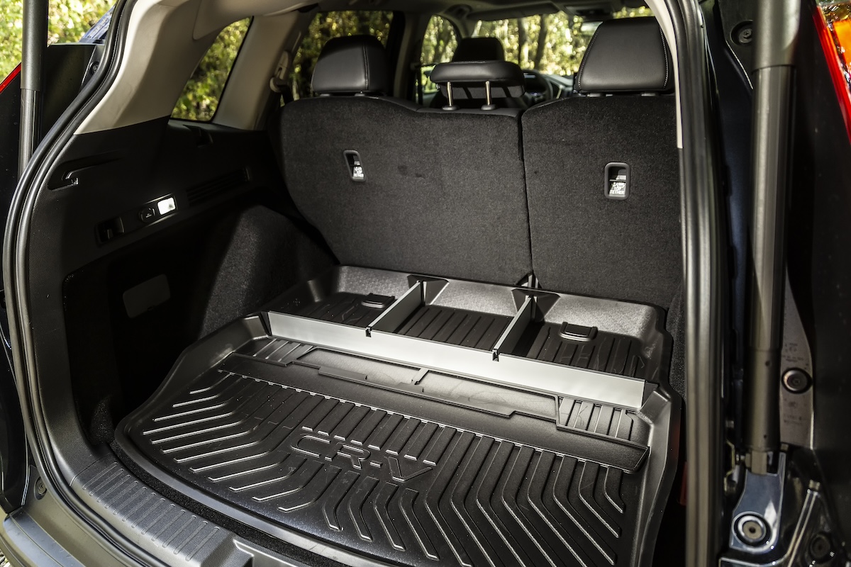 Dacă vrei spațiu peste medie într-un SUV compact, trebuie să vezi noul CR-V. Stă foarte bine la acest capitol, mai ales în spate, unde are și alte avantaje. Șezutul banchetei culisează în față aproape 18 cm, iar spătarul are mai multe poziții de înclinare – foarte confortabil și modulabil, pentru că spătarul se rabatează inclusiv în poziție complet verticală. Portbagajul are 586 de litri, cu 89 mai mulți decât la generația anterioară.