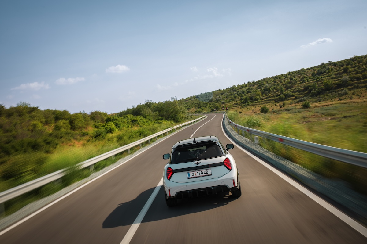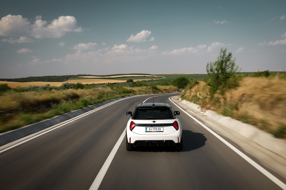 Mergem către acest adăpost ca să vedem ce a putut să facă o italiancă, Sara Turetta, stabilită de 20 de ani în România, pentru animalele din țara noastră. Autostrada este cel mai direct și logic drum, iar la 130 km/h nu durează mult până simt tot mai tare în coloană rosturile fiecărui pod. Nu e vina mașinii, este o sportivă cu suspensii destul de dure, ci a drumului, dar zdruncinăturile puternice te obosesc la un moment dat. Asta, deși suspensiile sunt adaptive, făcând parte din echiparea John Cooper Works. Colegul meu din dreapta are aproape 1,9 metri și este la limită în privința spațiului pentru cap, deși a coborât la minim scaunul.