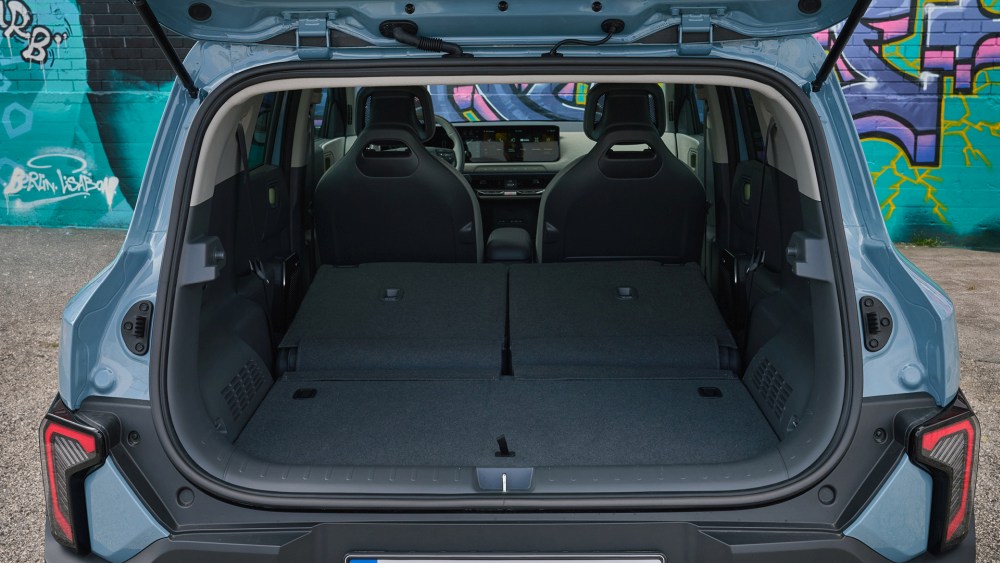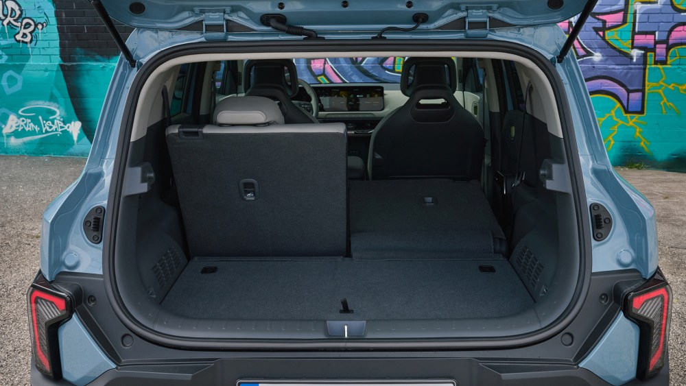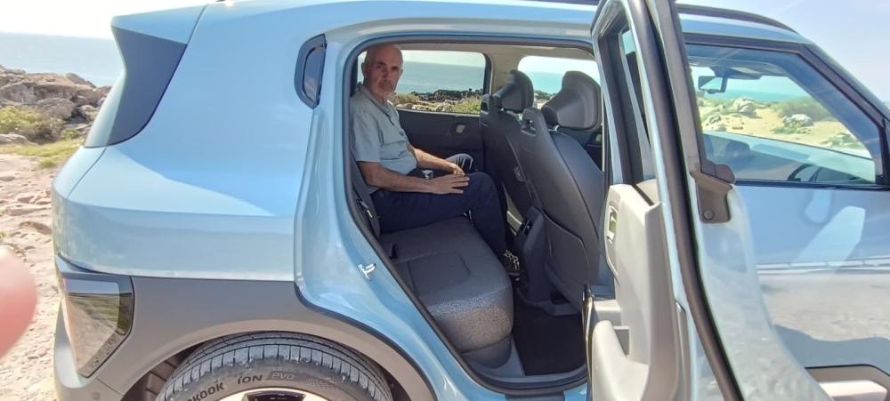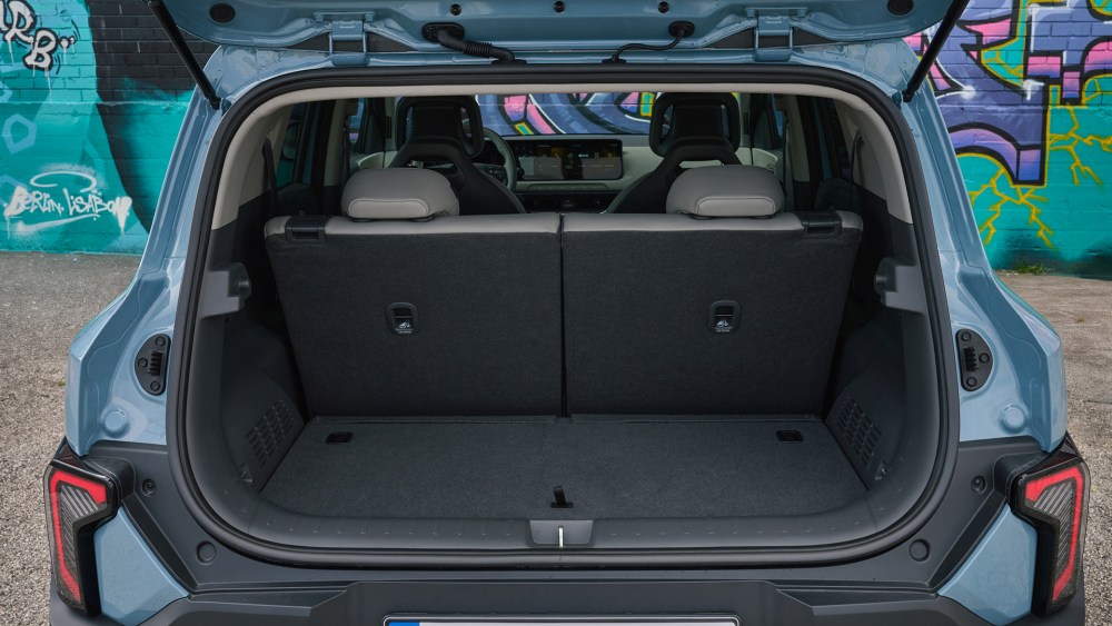 Apropo de banchetă, mașina vine standard cu banchetă spate, iar opțional se oferă ca și la Hyundai Inster două locuri individuale în spate care culisează independent înainte-înapoi degajând și mai mult spațiu la genunchi sau mărind volumul portbagajului. Astfel, față de cei 362 litri ai portbagajului standard care reprezintă deja o valoare foarte bună, prin împingerea scaunelor individuale înainte, volumul crește până la 403 litri, o valoare record în segment. Portbagajul are podea dublă astfel că prin poziționarea podelei la nivelul de sus se creează o suprafață plană la rabatarea banchetei și se obține un volum de 1.201 litri, iar pentru un cablu de încărcare Typ 2 există și un frunk în față de 15 litri.