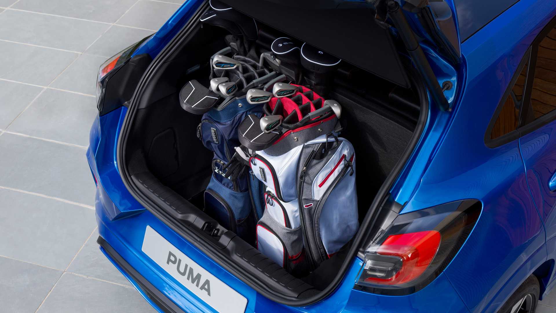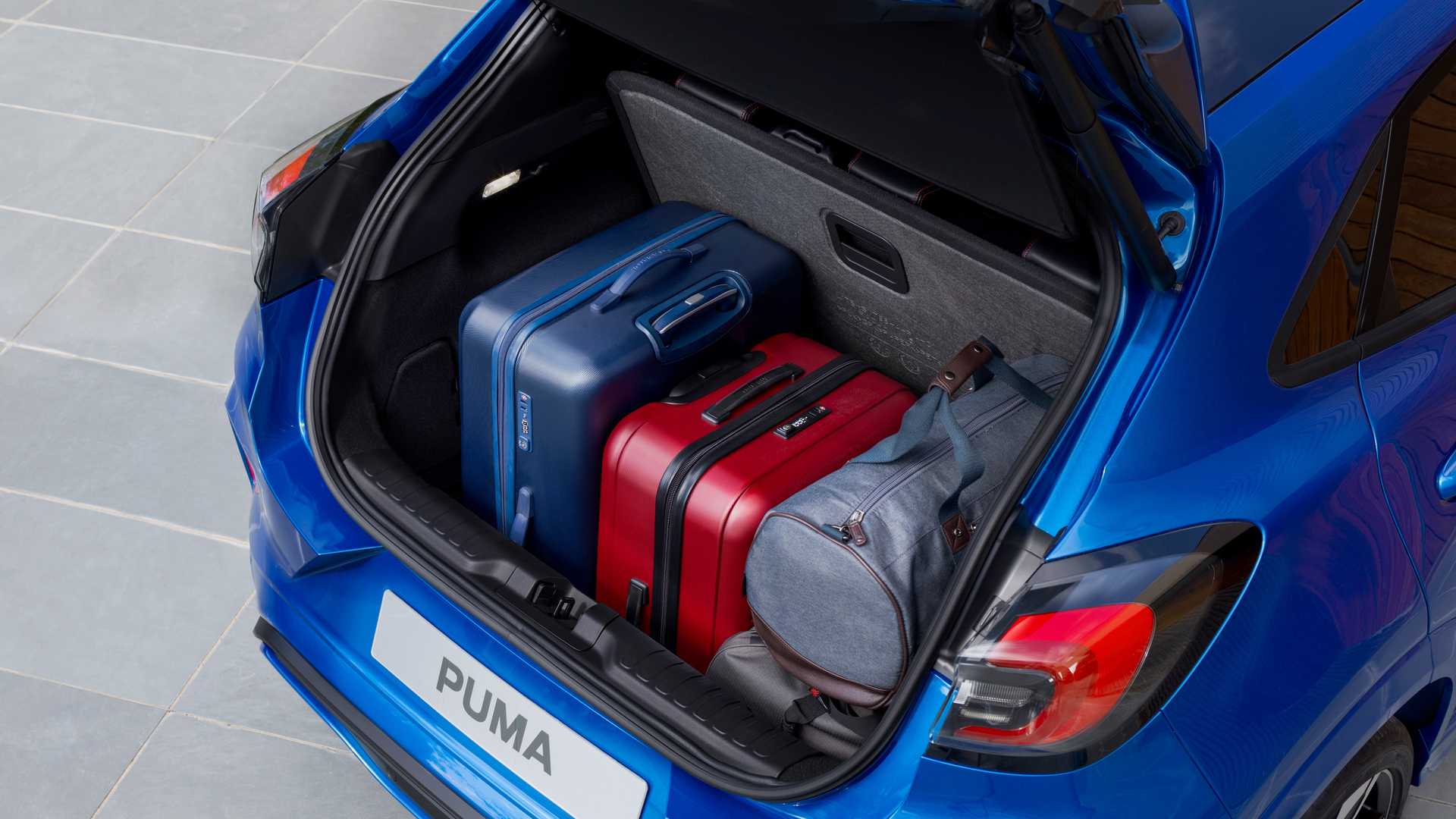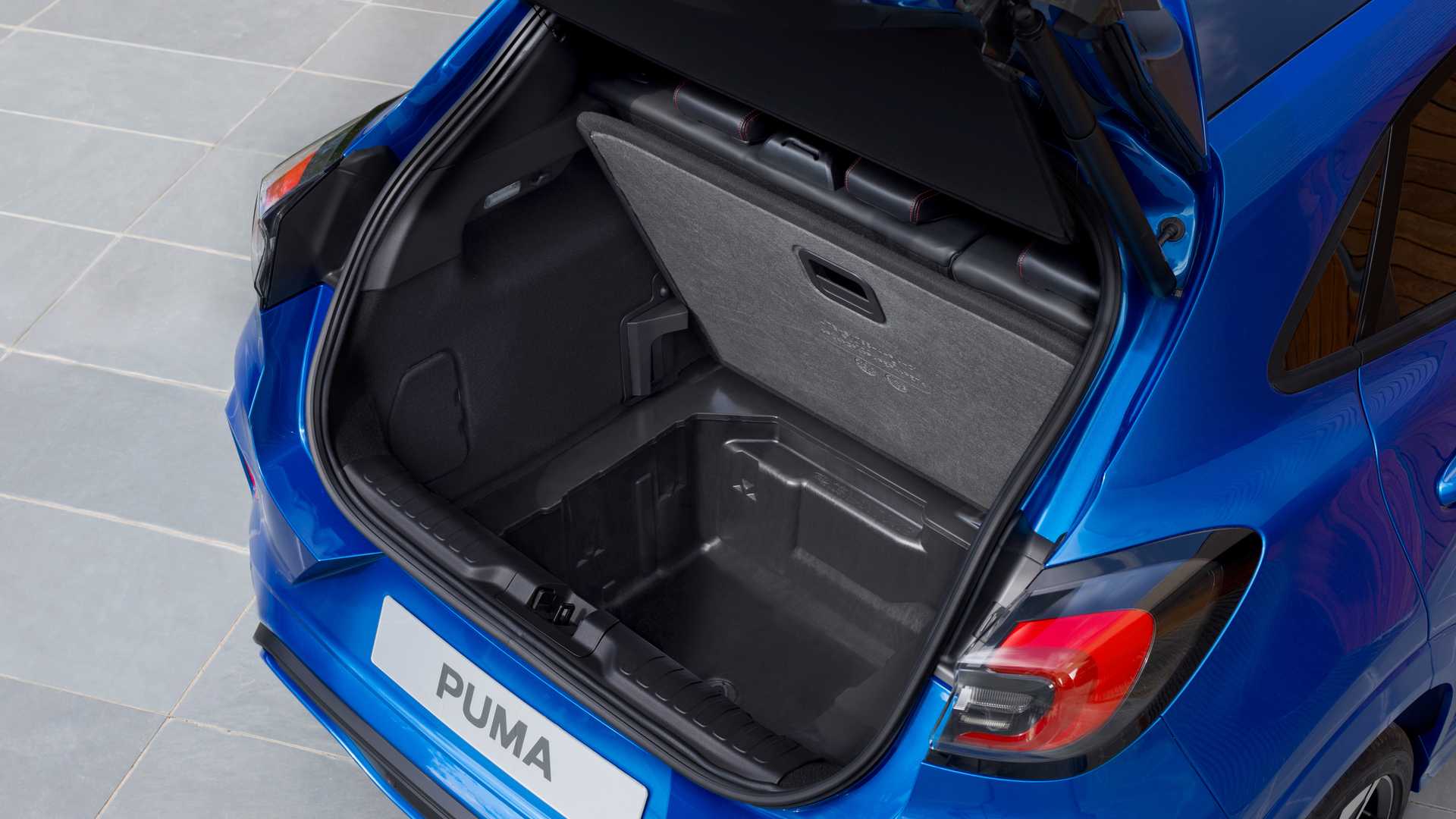 Să vorbim acum mai pe larg despre atu-ul spațiului – Puma are nu doar un portbagaj de 456 litri, ci mai ales soluții atipice de depozitare: podea cu trei poziții de încărcare, spațiu de depozitare ascuns, de 80 de litri, care poate fi spălat (dotat cu bușon de scurgere a apei) sau hayon cu ruloul portbagajului încorporat. În momentul lansării Puma va fi oferit cu tehnologia EcoBoost Hybrid – însă sistemul este unul de tip mild-hybrid, nu hibrid clasic. Există două versiuni – de 125 sau 155 CP, iar acumulatorii Litiu-Ion sunt legați la un sistem electric de 48 volți. Mai târziu vor fi disponibile un propulsor diesel EcoBlue și o transmisie automată cu dublu ambreiaj și șapte trepte. Nu vor exista opțiuni de tracțiune integrală.