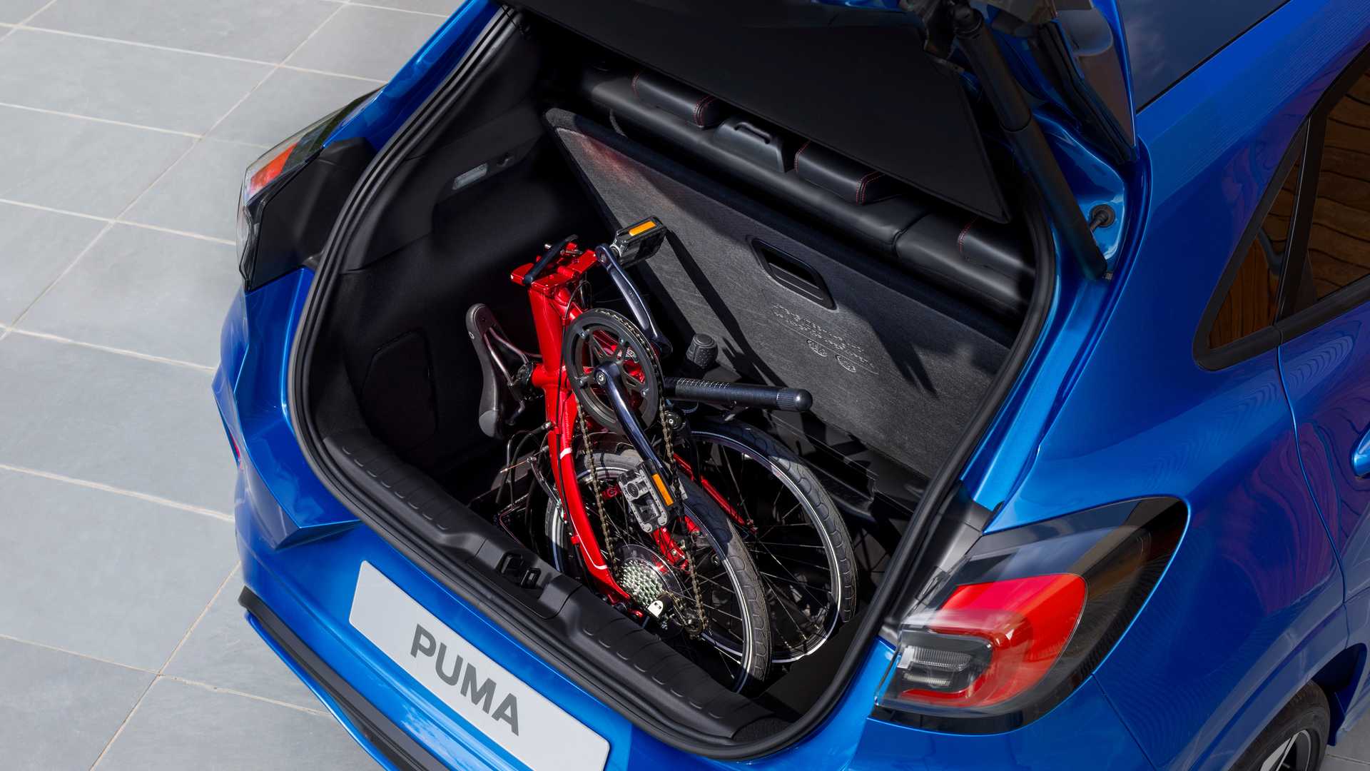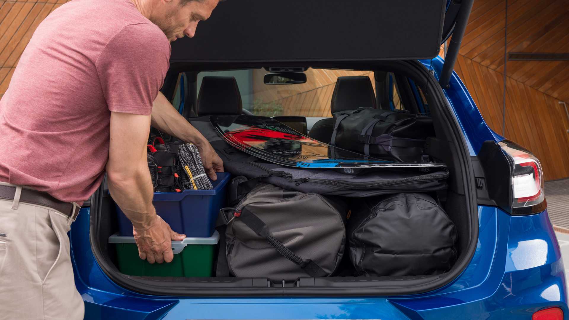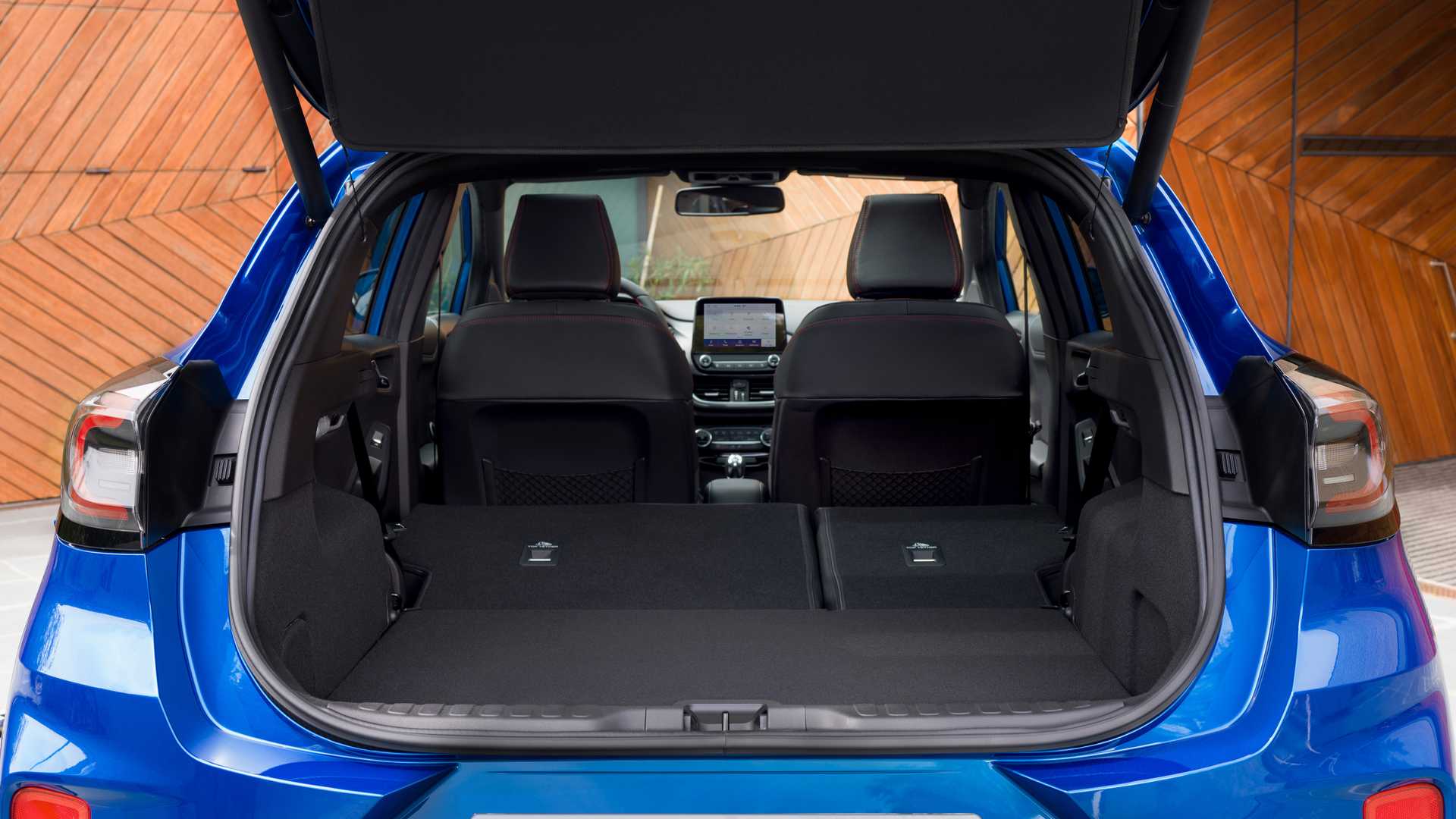 Să vorbim acum mai pe larg despre atu-ul spațiului – Puma are nu doar un portbagaj de 456 litri, ci mai ales soluții atipice de depozitare: podea cu trei poziții de încărcare, spațiu de depozitare ascuns, de 80 de litri, care poate fi spălat (dotat cu bușon de scurgere a apei) sau hayon cu ruloul portbagajului încorporat. În momentul lansării Puma va fi oferit cu tehnologia EcoBoost Hybrid – însă sistemul este unul de tip mild-hybrid, nu hibrid clasic. Există două versiuni – de 125 sau 155 CP, iar acumulatorii Litiu-Ion sunt legați la un sistem electric de 48 volți. Mai târziu vor fi disponibile un propulsor diesel EcoBlue și o transmisie automată cu dublu ambreiaj și șapte trepte. Nu vor exista opțiuni de tracțiune integrală.