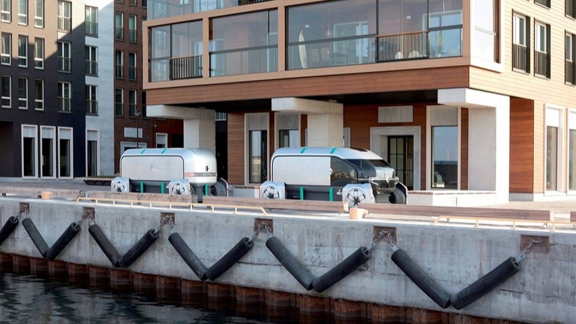 Diferențele estetice nu sunt numeroase – în afară de evidenta lipsă a zonelor vitrate în spate: plafonul a fost acoperit cu celule fotovoltaice pentru un plus zilnic de până la 15 km la autonomie, avem acum uși cu deschidere largă în spate, lipsa portierei culisante pe partea șoferului este clasică și designul parașocului spate a fost și el modificat. Jantele de 20 inch și portierele față și spate (culisantă) cu deschidere electrică, sau stația de lucru cu laptop inclus ce apare după plierea scaunului din mijloc (habitaclul are aranjament clasic LCV, cu trei locuri) sunt dovada modernității și spiritului de avangardă ce a cuprins inclusiv segmentul vehiculelor comerciale în ultimii ani. Șoferul poate lucra chiar și în mers – modul automatizat este activat direct de pe volan, care apoi se retrage în planșa de bord regândită special pentru acest aspect, iar scaunul său se rotește spre dreapta cu 15 grade. În plus, informațiile cheie nu mai sunt oferite cu ajutorul unui bord clasic – în schimb, acestea sunt proiectate direct pe drum în format 3D cu ajutorul realității augmentate, iar cele mai puțin relevante apar pe o tabletă portabilă. În același timp, comenzile principale sunt localizate doar pe volan – acesta are parte de o zonă tactilă.