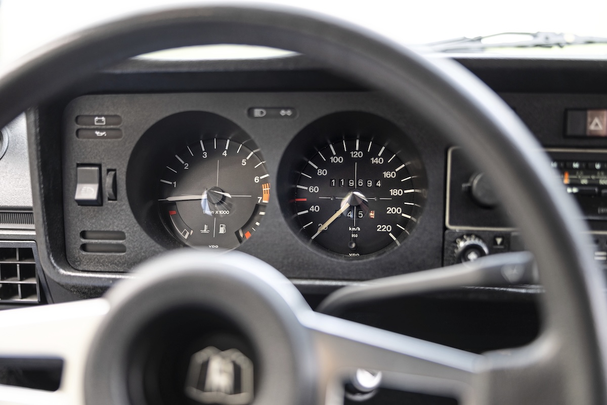 Chiar și primul VW Golf GTI — în care stai surprinzător de sus, fără ca silueta delicată a caroseriei să te facă să te simți cocoțat — știe perfect să facă asta, doar că în alt fel decât modelul actual. În consola centrală neagră, lucioasă, a acestuia clipește un buton: „Engine Start/Stop”. Iar roșul pulsatoriu al butonului de pornire e ca o promisiune despre care oricine l-a apăsat știe că se va împlini imediat. Cel vechi cere, în schimb, un gest simplu: cheia clasică VW în contact, rotită, cu piciorul stâng pe ambreiaj și dreptul pregătit deasupra accelerației. Dar așteptarea este aceeași ca în noul Edition 50 — tensiunea, emoția, anticiparea, de fiecare dată. Pentru că știi ce urmează: spiritul GTI.