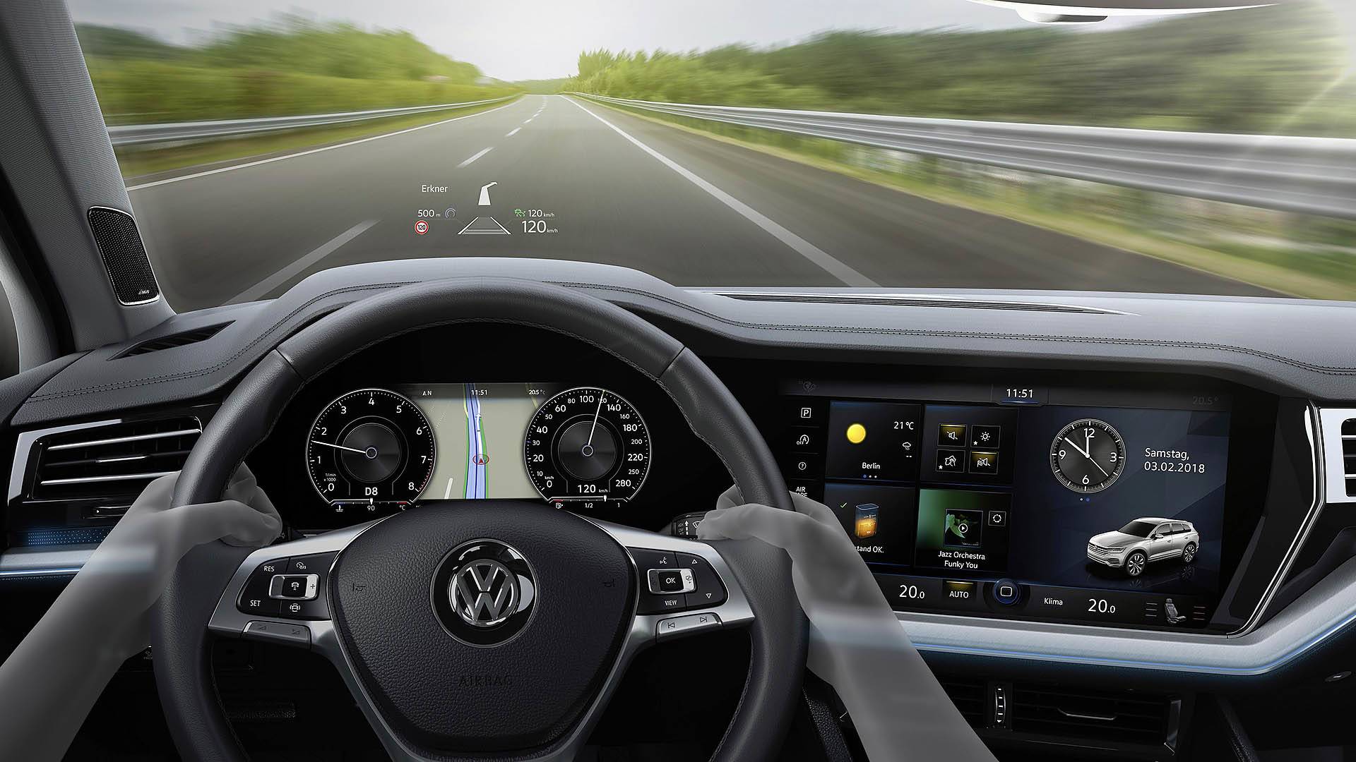 Touareg este și modelul de debut al noului Innovision Cockpit – format în versiunile de top din noul Digital Cockpit (instrumentar de bord cu ecran de 12 inch) și sistemul de infotainment Discover Premium cu ecran de 15 inch, sau al unor noi sisteme de asistență și siguranță. Din această categorie avem spre exemplu sistem Night Vision, cu cameră termală, Roadwork Lane Assist (semi-automatizare până la viteza de 60 km/h), Front Cross Traffic Assist, un „Windshield Head-up Display” (proiecția se realizează direct pe parbriz) sau direcția pe toate cele patru roți.