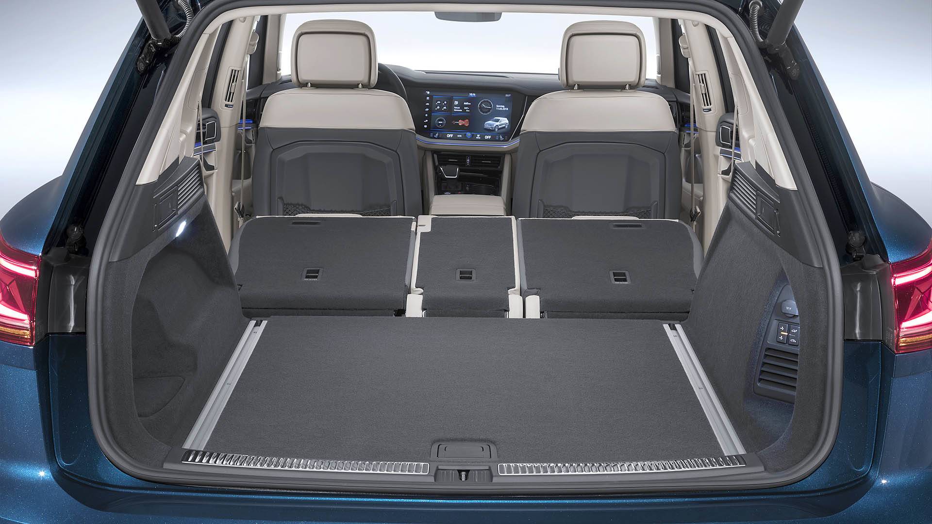 În ceea ce privește schimbările dimensionale, demn de menționat este că noul Touareg este cu 77 mm mai lung – 4878 mm, cu 44 mm mai lat – 1.984 mm dar și cu 7 mm mai scund – 1702 mm. Spațiul interior este astfel mai mare, la fel și portbagajul, care crește de la 697 la 810 litri fără scaunele spate rabatate. În plus, trecerea la noua arhitectură constructivă a adus cu sine o scădere în greutate – 106 kg datorită construcției din aluminiu (48%) și oțeluri „high-tech” (52%).